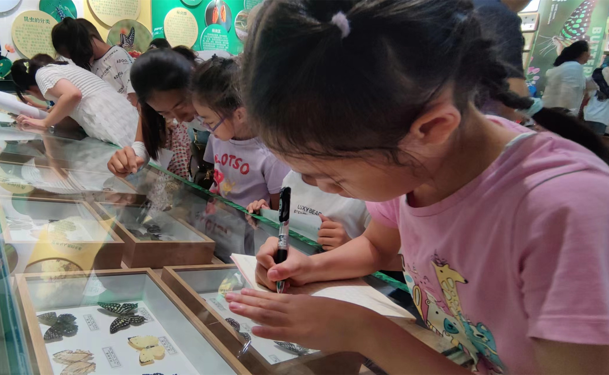 “你们知道向日葵最怕什么害虫吗?现在让我们一起去寻找答案吧!”随后,在老师的带领下,孩子们参观了昆虫种子博物馆,并通过识别标本、谜语猜猜看、自然皮影戏等方式,了解自然知识,丰富有趣的活动,让孩子们变身“自然博物家”。