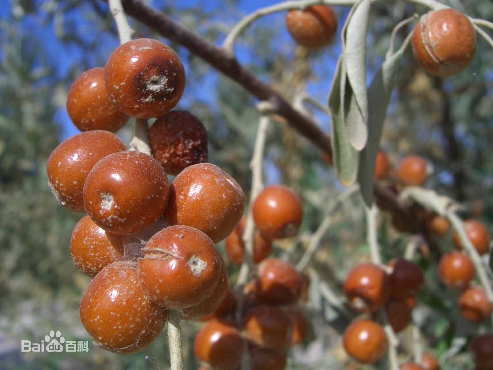 沙枣(Elaeagnus angustifolia L.),是胡颓子科胡颓子属落叶乔木植物;花期5-6月;果期9月。沙枣具有很高的药食同源价值,果实味酸、微甘、凉;树皮酸、微苦、凉;茎干根含生物碱类;叶及干枝尚含有儿茶精及表儿茶精;果有健脾止泻功效,用于消化不良等症;树皮有清热凉血、收敛止痛功效,用于慢性支气管炎、胃痛、肠炎、白带等症,外用止烧伤、止血。